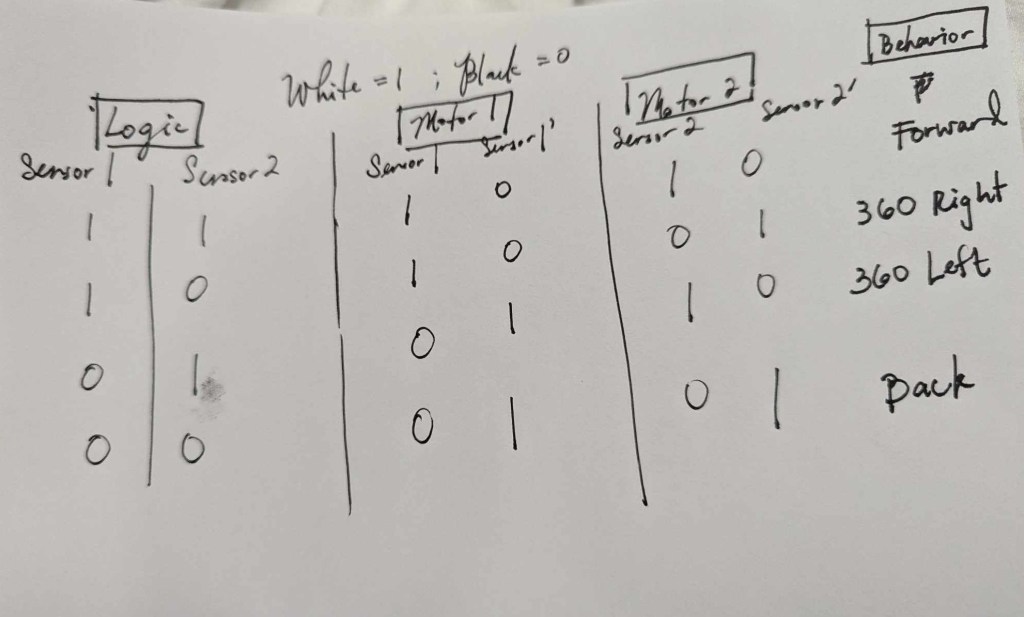 The line follower project had two phases. The first phase utilized ‘NOT’ logic gates (IC7404) to test how accurately the build could track and follow a line. The second phase introduced a more complex track with intersections and dead ends.